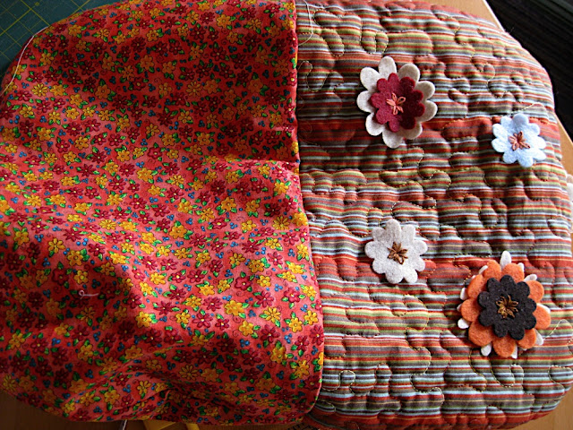 Now attach any felt shapes you’re going to use to the quilted side just before the lining is added.