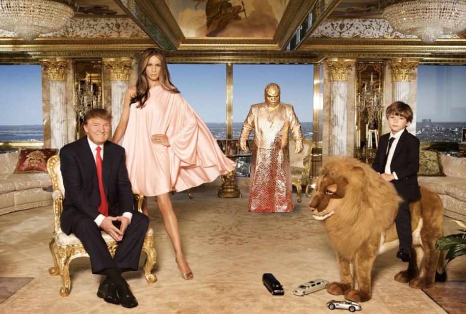 Ceelo Green wore a bizarre costume to the Grammys ( no one is really sure why) but he seemed to fit right into the Trump Tower penthouse as a gold plated butler. And why not, when you observe everything else in the place is gold plated or gilded??